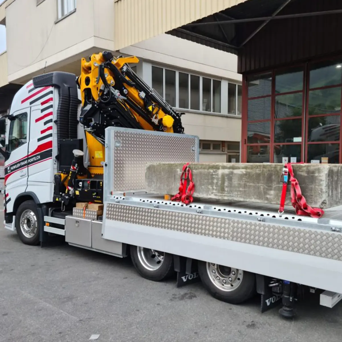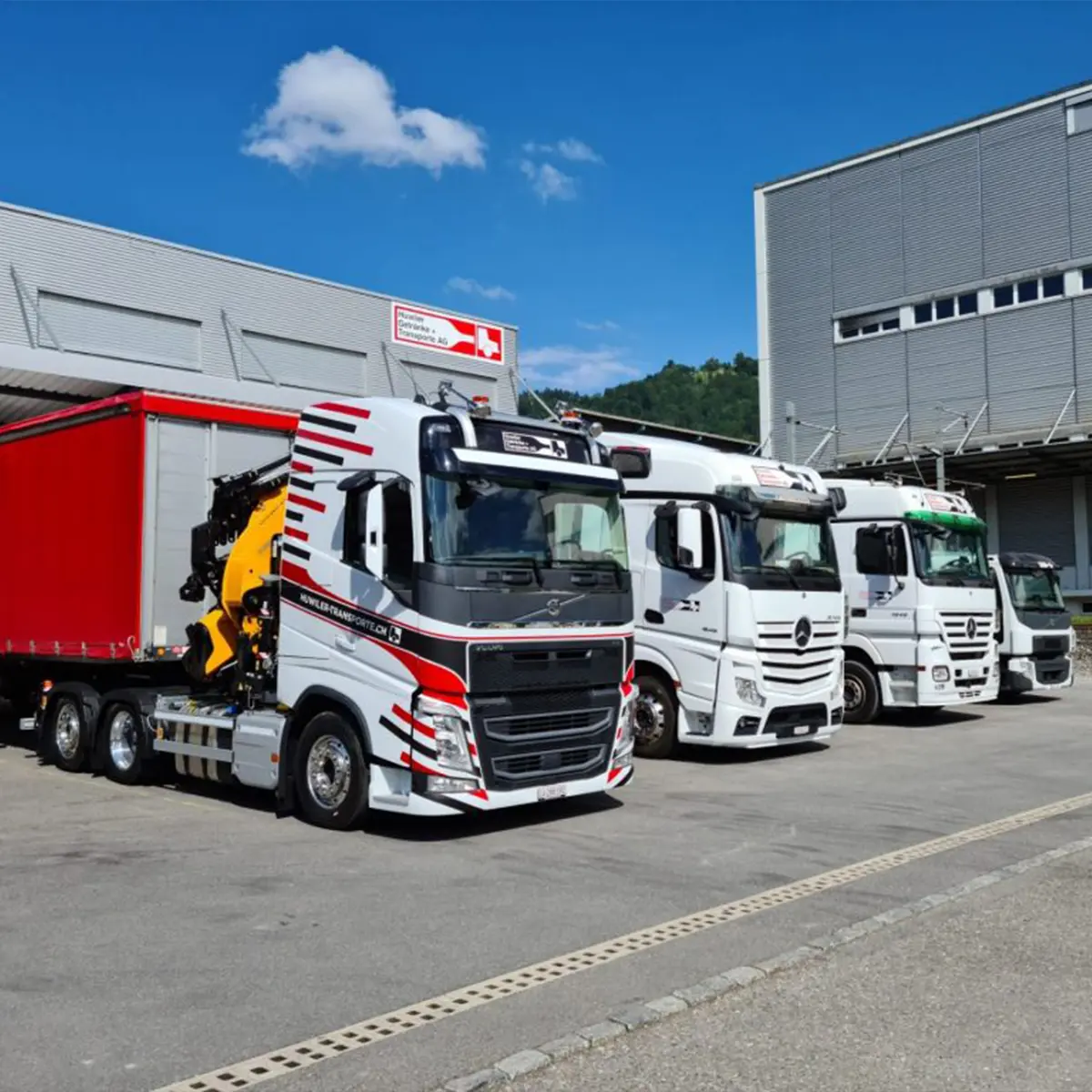 Alle unsere Planenfahrzeuge können seitlich, via Hebebühne oder von oben z.B. via Kran beladen und abgeladen werden. Zur Standardausrüstung unserer Fahrzeuge gehören: Palettenhubwagen, Spanngurten, Helm, Krangurten und Wolldecken.